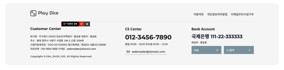 - · 푸터메뉴, 입금정보, 카피라이트는 해당 파일에서 직접 수정합니다.