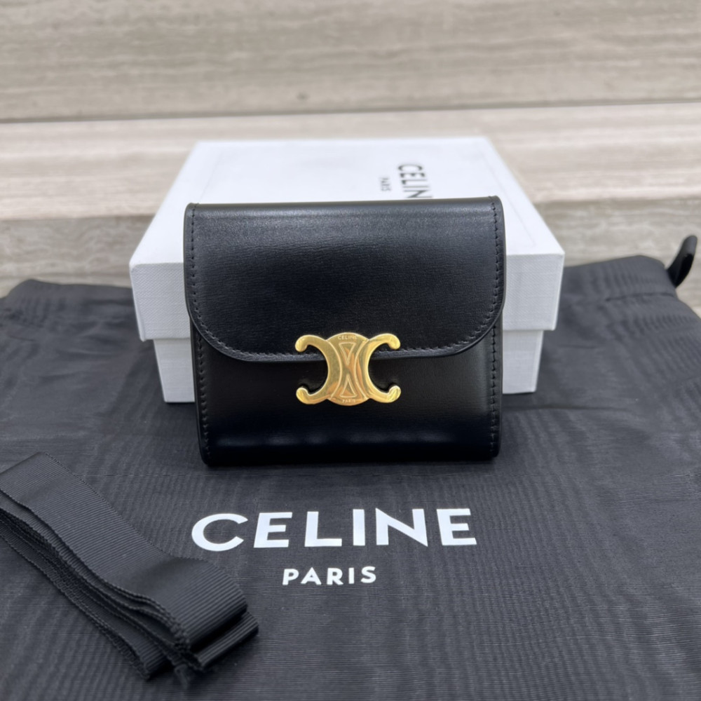 셀린느 스몰 월렛 트리옹프 샤이니 카프스킨 블랙