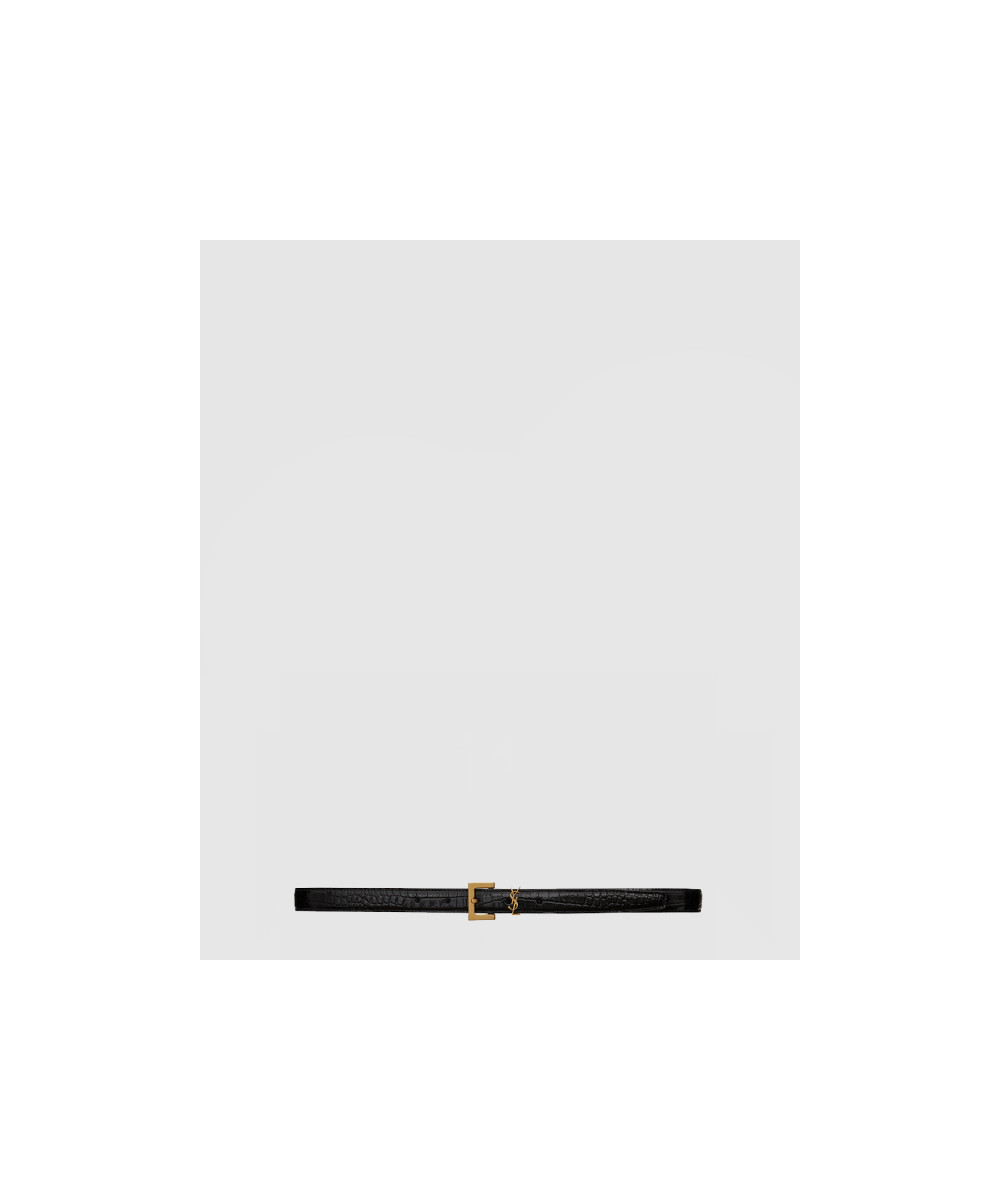 스퀘어 버클을 장식한 크로커다일 엠보스드 가죽 소재의 얇은 모노그램 벨트 554465 > 생로랑