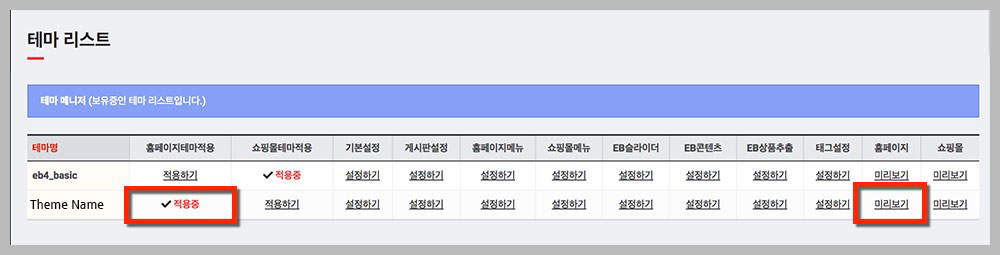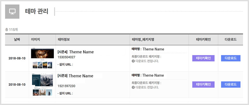 기업테마에 대한 설명과 특이사항 등을 읽고 테마설치 및 사용에 참고하기 바랍니다.