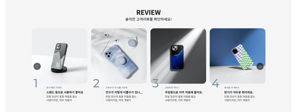 - · 이미지 비율 #1(pc) : 높이 500 픽셀 / #2(mobile) : 1000x1000 이미지 사용합니다.