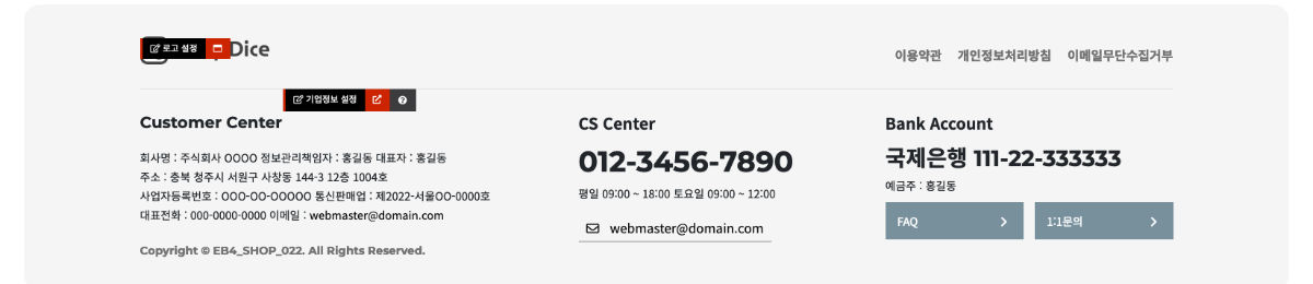 - · 푸터메뉴, 입금정보, 카피라이트는 해당 파일에서 직접 수정합니다.